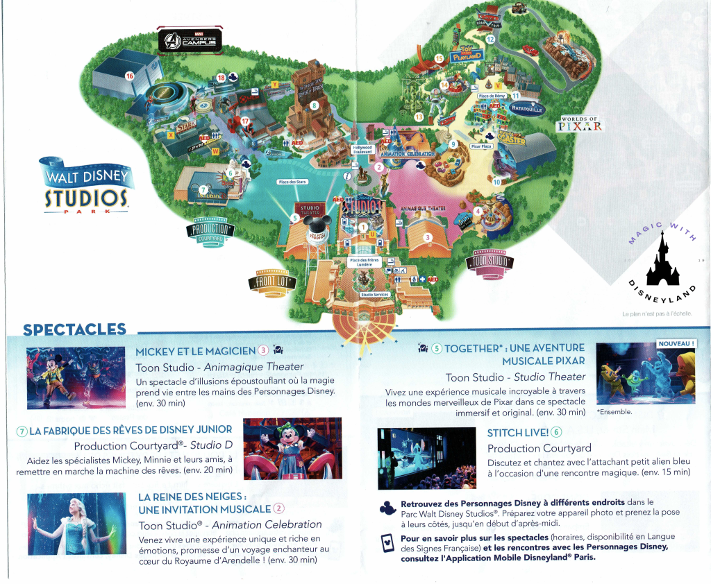 Désormais principalement disponibles sous forme dématérialisée via l’application mobile de Disneyland Paris, les plans des parcs ne sont plus distribués sur place. Ils sont désormais disponibles uniquement par les Cast Members du City Hall, des Studios Services ainsi que dans les réceptions et les conciergeries des hôtels Disney. Ainsi, pour bien préparer votre visite, je vous propose de découvrir les plans des parcs et programme avec les attractions que vous trouverez sur place lors de votre visite ! Voici donc les plans des parcs Disney de Disneyland Paris.