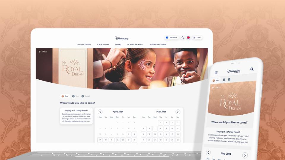 La réservation de l’expérience Mon Rêve Royale est uniquement disponible pour les résidents du Disneyland Hôtel.
