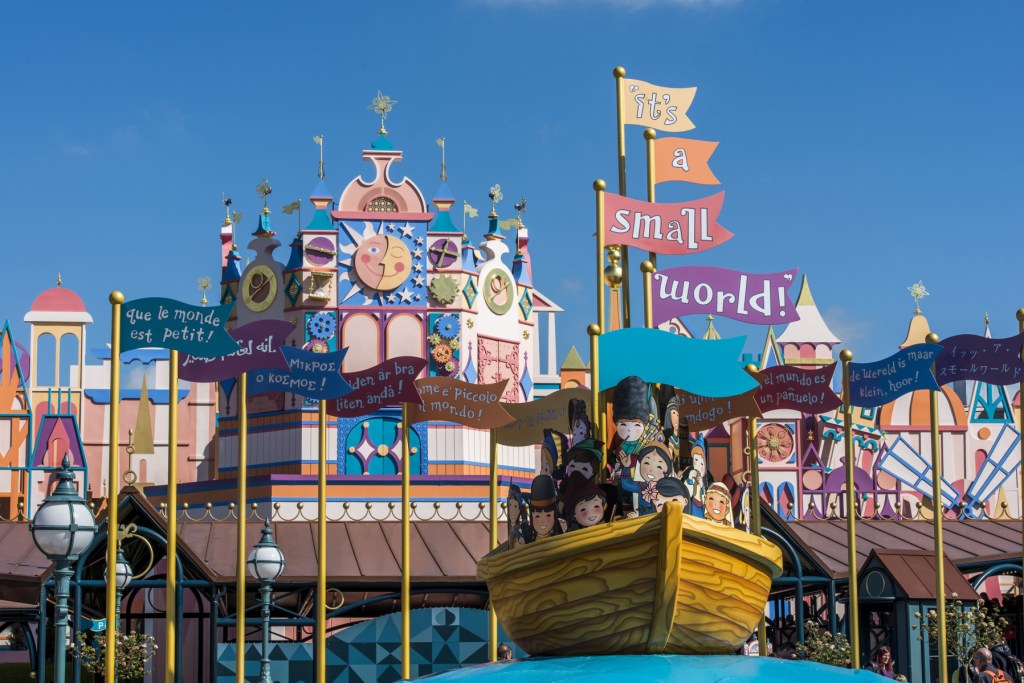 Pour Disneyland Paris l’attraction a ouvert le 12 avril 1992, pour la version de Disneyland Paris elle possède à l’entrée une fontaine en forme de planète Terre surmontée d’une barque accueillant plusieurs poupées. La façade possède, elle des couleurs pastel qui ressort parfaitement lorsqu’il y a un ciel bleu ! Dernièrement l’attraction a fermé temporairement du 29 novembre au 5 mai 2023 où une amélioration du confort du personnel du parc travaillant au sein de l’attraction, et une rénovation de la façade du parcours scénique avec l’ajout de poupées qui atteint d’handicape