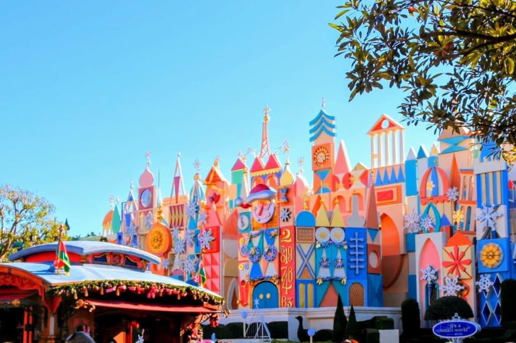 La version de Disneyland est la version originale, conçe par Mary Blair. L’extérieur fut plusieurs fois revue et corrigée durant les décennies. D’ailleurs depuis 1997, l’attraction est décorer à la période de Noël par des décorations de fêtes. Les chanson Jingle Belles et Deck the Halls sont joutées à la chanson habituelle
