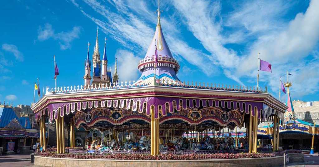 - Montez à de l’un des 90 chevaux ornés de bois sculpté dans cette attraction classique inspirée de Cendrillon de Disney .