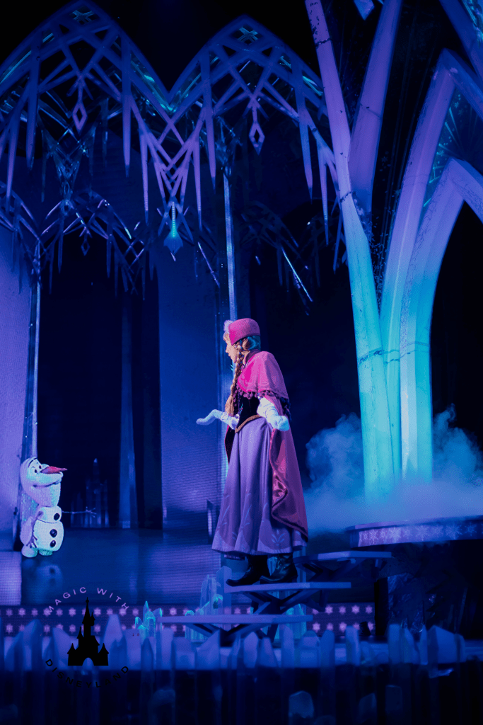 Dans ce spectacle magique laissez-vous entraîner par une interprétation du Chant du Renne avec Kristoff et Sven avant d’apprendre des mouvements magiques avec Anna ! Surprenez Elsa dans son spectaculaire Palais de Glace et partagez une interprétation magique de Libérée, Délivrée et L’amour est un cadeau.