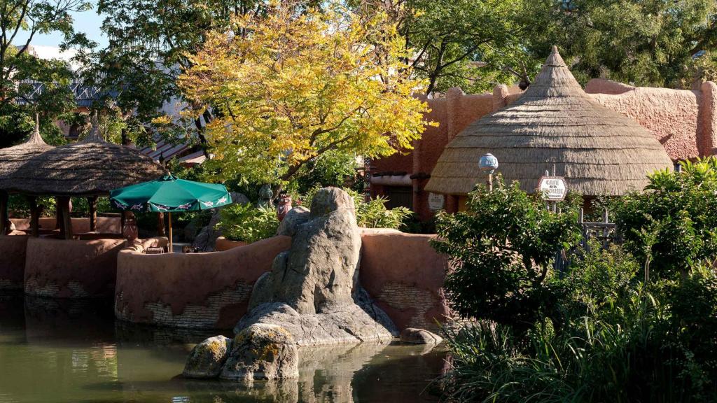 Savourez un encas et reposez-vous à l’ombre des huttes africaines, sur les berges d’une oasis.