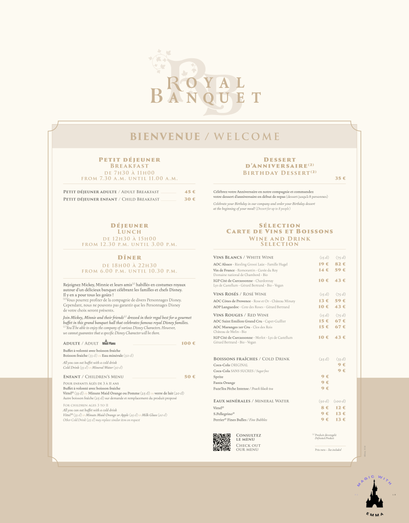 Rejoignez Mickey, Minnie et leurs amis revêtus de leurs costumes royaux exclusifs autour d’un délicieux banquet célébrant les familles et chefs Disney.