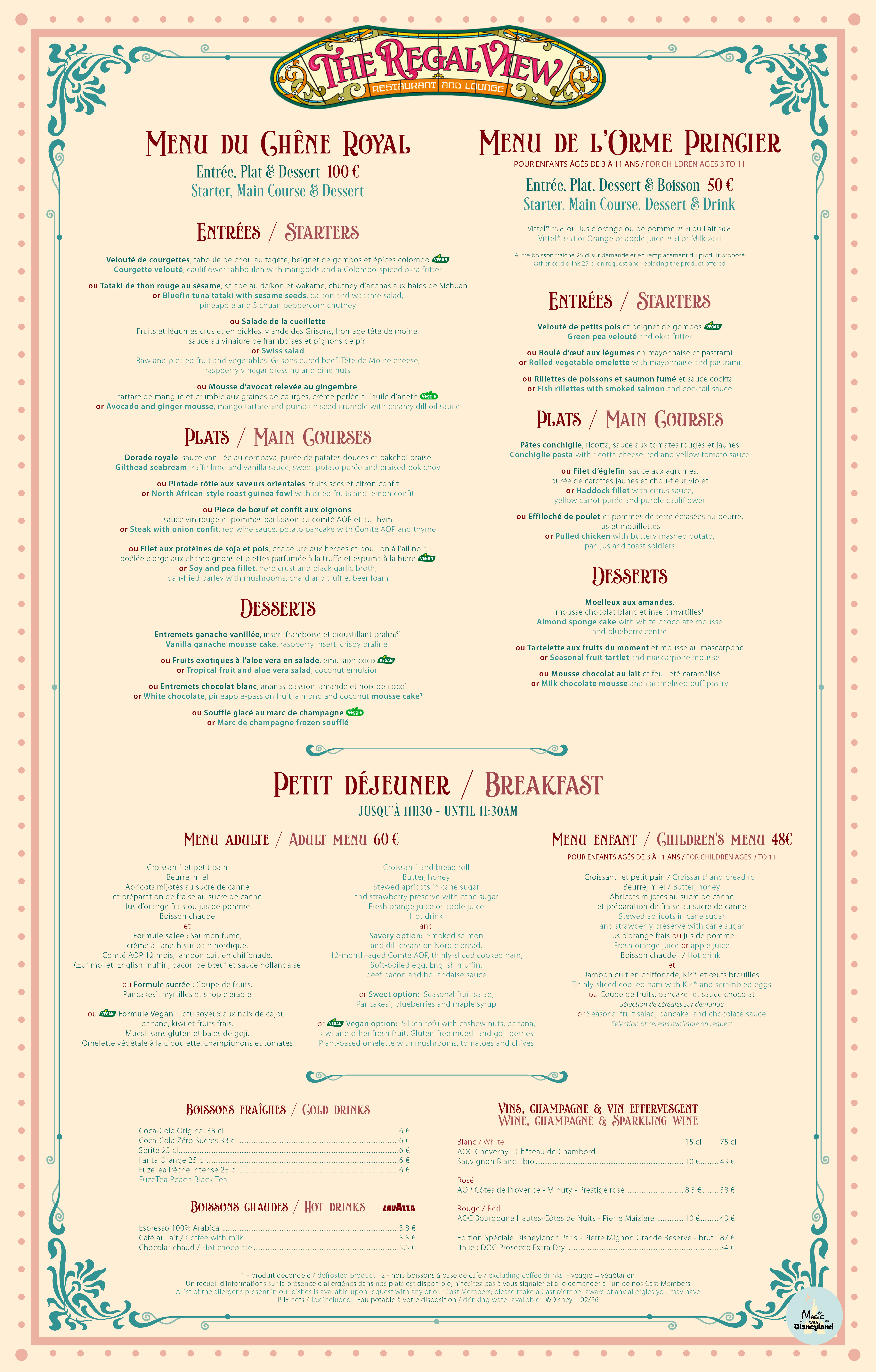 - Type : Service à table & Lounge, Repas en compagnie des Princesses Disney